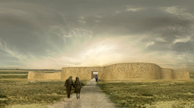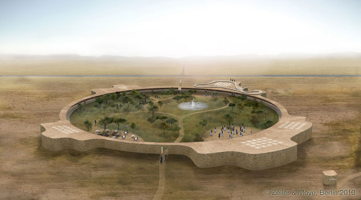ولكون سطح البناية يمكن المشي عليه فهذا يتيح للزوار النظر الى المقبرة والتواصل نفسيا مع الضحايا. ويوفر الفضاء الداخلي ذي اللون الاخضر مساحة للتواصل والنشاطات الاجتماعية. ويوحي الجدار الخارجي بفكرة سجن (نكرة السلمان) السئ الصيت من جانب وفي الجانب الاخر منازل قرية كارميان التقليدية التي تم تدميرها في عمليات الانفال. وحصل هذا التصميم على موافقة وزارة شؤون الشهداء والانفال.