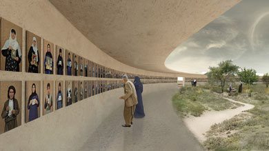 سيكون في داخل النصب التذكاري معرضا لصور اكثر من 1500 من الناجين من عمليات الانفال يحملون قطع تذكارية لاقاربهم المفقودين والشهداء.