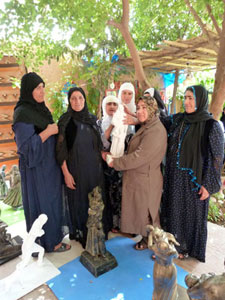 وبعد مناقشات معمقة مع فنانين محليين قامت النساء بتطوير الفكرة وهي ان يكون التمثال لامرأة تحمل طفلا ميتا على يديها وطفلا اخر بجانبها. وسيرمز هذا التمثال لحزن المرأة على فقدان الشهداء وكذلك يظهر شجاعة النساء الناجيات واطفالهن.